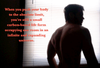 Published 02/16/2015 at 502 × 343 in Motivational Posters ← Previous Next → When you push your body to the absolute limit, you’re still a small carbon-based life form occupying one room in an infinite and expanding universe. Like Loading...